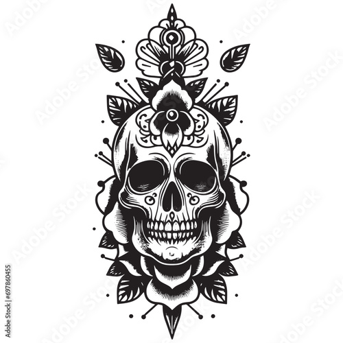 tribal skull tattoo, skull and crossbones, tattoo pattern, tattoo art, illustration, white background