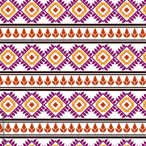 Tribal traditional fabric batik ethnic of ikat floral seamless pattern of leaves Spring geometric repeating Vector Design on a white background