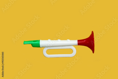 Tricolor toy trumpet with the colors of the Mexican flag to celebrate Independence Day of Mexico and Revolution Day