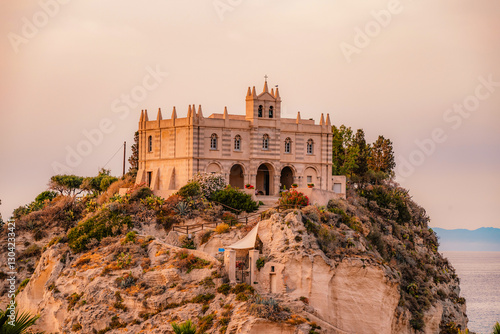 Tropea, Calabria, Italy. Church of Santa Maria dell'Isola. Monastery and coastline with azure crystal-clear water