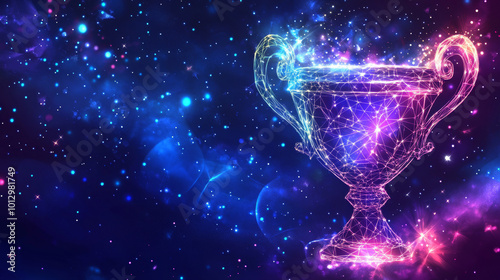 Trophy Cup: Abstract Image of a Champion Cup in the Form of a Starry Sky or Space, Composed of Points, Lines, and Shapes Resembling Stars. Low Poly Concept. Vector Illustration.