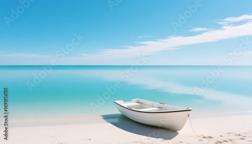Tropical Beach Paradise White Boat on Turquoise Water