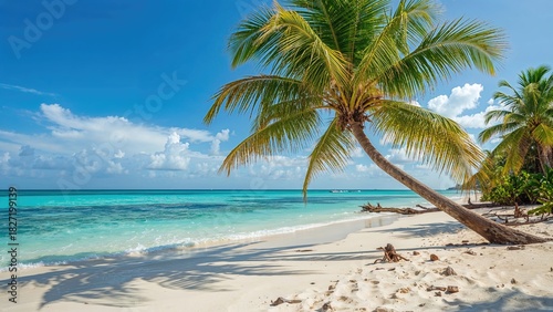 tropical, beach, scene, palm tree, white sand, coastal, summer, paradise, scenic, lush, vacation, landscape, serenity, horizon, vibrant, sunny, tranquil, nature, tropical paradise, leisure, relaxation, scenic view, no people