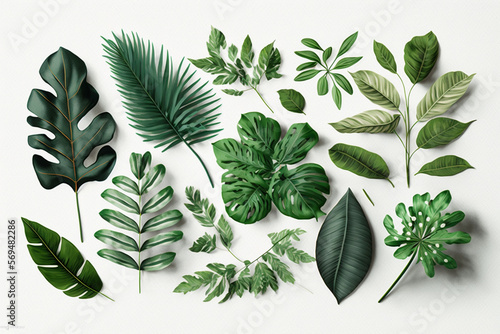 Tropical Exotic Luxury leaves isolated on white background. Graphic elements for advertising and creativity.Ai generated