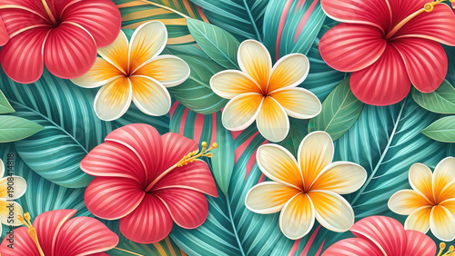 flower, floral, tropical, leaf, blossom, vibrant, floral pattern, tropical flower, plant, beauty, nature, design, decoration, art, background, colourful, bloom, exotic, pattern, illustration, lush, high-coloured, bright, natural, fresh, decorative, artistic, creative, detail, texture, botanical, graphic, arrangement, composition, display, element, surface, delicate, harmony, elegant, soft, summer, paradise, idylli, tranquil