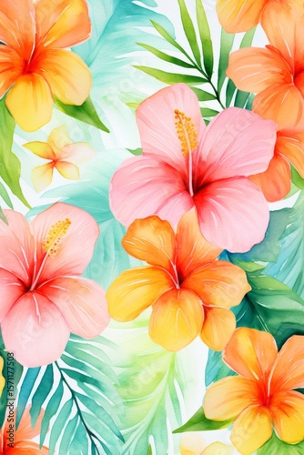 hawaii, hibiscus, vintage, exotic, paradise, botanical, aloha, floral, composition, t-shirt, ficus, fashion, greeting, modern, brush, illustration, layout, retro, arrangement, corsage, stroke, palm, leaf, bouquet, summer, print, beach
