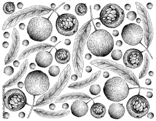 Tropical Fruit, Illustration Wallpaper of Hand Drawn Sketch Hydnocarpus Anthelminthicus Fruits Isolated on White Background.