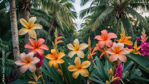 tropical, garden, flower, bloom, vibrant, colours, shades, palm, tree, lush, atmosphere, greenery, nature, landscape, exotic, plant, foliage, botany, summer, bright, colourful, blossom, flower petals, sunny, serenity, calmness, horticulture, beauty, environmental, paradise, scenic, park, relaxation, high-coloured, closeup, flora, growth, wildlife, season, vacation, botanical, picturesque, rich, aesthetic
