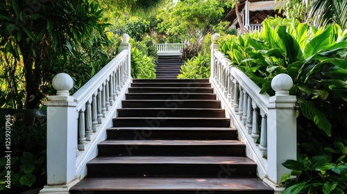 stair, garden, tropical, villa, step, path, resort, luxury, nature, paseo, wood, white, balustrade, railing, plant, green, landscape, summer, travel, vacation, relaxation, paradise, architecture, design, elegant, upward, growth, progression, success, peaceful, serene, tranquil, escape, holiday, destination, journey, pathway, ascent, elevation, climbing, achievement, ambition, perspective