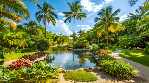 Tropical garden with a variety of exotic plants