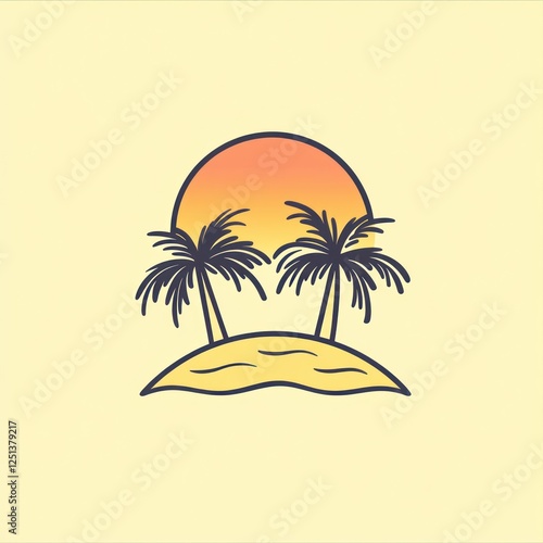 Tropical Island Sunset Scene With Two Palm Trees