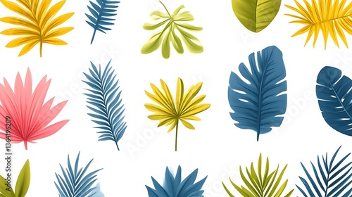 palm leaf, foliage, plant, pattern, background, texture, design, illustration, vibrant, colourful, summer, nature, wallpaper, graphic, element, digital artwork, tropical, botanical, greenery, bright, leaf, jungle, isolated, white background, design element, floral, decor, print, fabric, seamless, vector, artwork, stylish, trendy, professional, adventure, corporate, healthy lifestyle, lifestyle