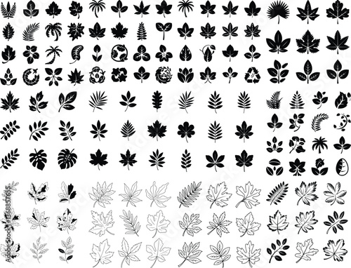 Tropical Leaves Set. Vector Illustration Collection of Tropical Leaf Silhouettes. Echotic Jungle Palm Leaves in Black Silhouette on a White Silhouettes tropical plants Tropical leaves silhouette