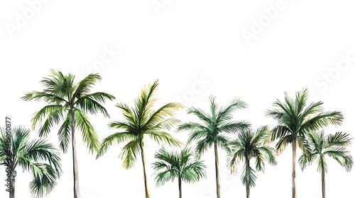 Tropical palm trees watercolor illustration on white background for nature and summer design