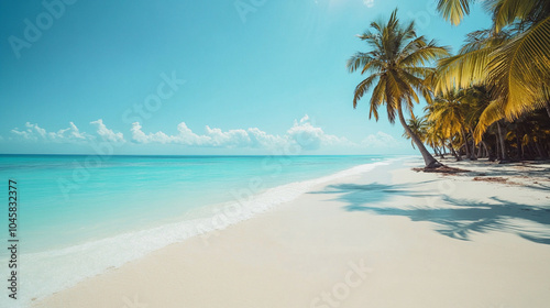 Tropical Paradise Beach with White Sand and Palm Tree