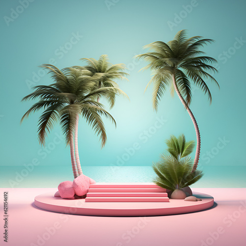 palm tree, summer, advertisement, advertising, ai, display, palm, pedestal, platform, presentation, product, promotion, show, stage, scene, empty, sun, template, tropical, design, holiday, vacation, background, beach, travel, dais, generative, racked, commercial, exhibition, floor, generated, lotion, paradise, relax, sale, showcase, trendy, copy space, sand, blank, exotic, ocean, beauty, blue, clean, concept, nature, sea