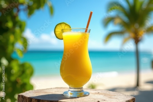 soursop, juice, tropical, refreshing, blend, glassware, stylish, sunny day, blue water, natural light, vibrant color