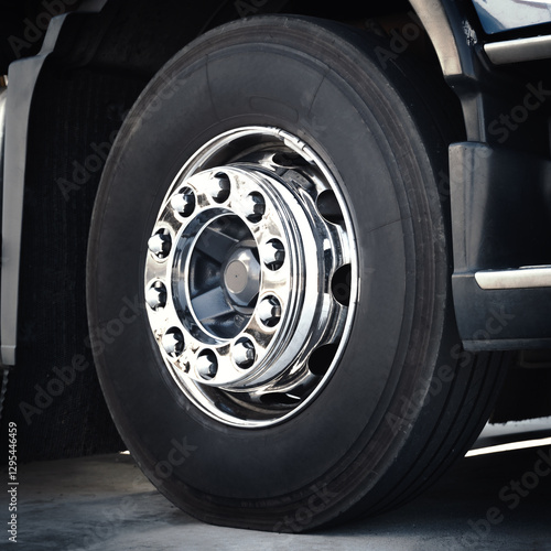Truck Wheels Tires. Big rig, Semi Truck Wheels. Freight Truck Logistics Transportation.