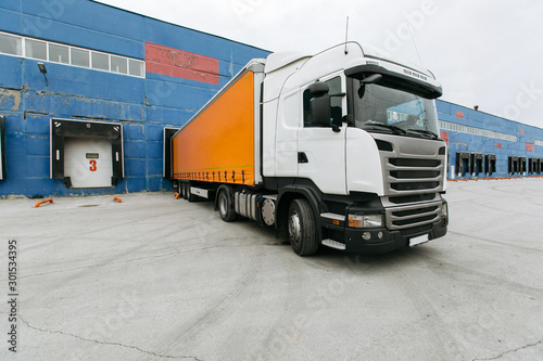 truck with a trailer at the warehouse