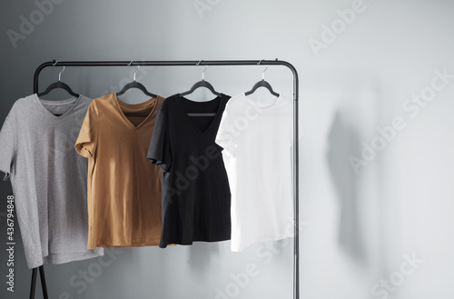 background, basic, black, boutique, brown, buy, caramel, casual attire, closet, clothes, clothes, clothing, collection, colours, cotton, design, dressing room, fabric, fashion, female, feminine, grey, hang, hanger, hanger, home, lifestyle, minimal, minimalist, modern, neutral, nobody, rack, retail, room, shirt, store, style, stylish, summer, t-shirt, textile, top, trendy, wall, clothes rack, wear, white