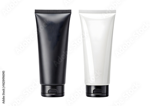Tube of cream, cosmetic tube container set in black and white isolated on white or transparent png background