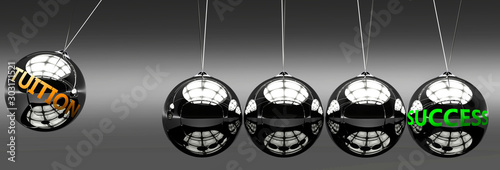 Tuition and success - the idea that Tuition helps to achieve success and happiness in business, work and life symbolized by English word Tuition and a newton cradle, 3d illustration