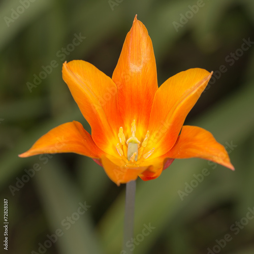 flower, orange, spring, closeup, tulip, plant, nature, yellow, green, macro, colours, beauty, day, contrast, outdoors, image, garden, sunlight, foreground, pistil, vibrant, bright, blossom, growth