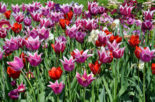 tulip, flower, spring, spring, garden, flowerbed, gardener, plant, colourful, field, gardening, may, tulip, ornamental plant, german, crossbreed, flower, flower, season, nature, cultivation, landscaping, vase, bouquet, onion, purple, yellow