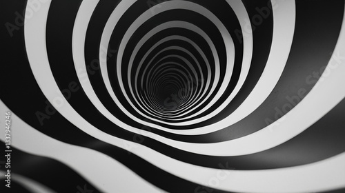 Tunnel of Illusion: A captivating abstract image showcasing an optical illusion within a tunnel, featuring concentric black and white stripes that create a sense of depth and movement.