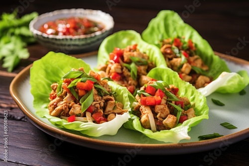 turkey lettuce wraps served in a porcelain dish