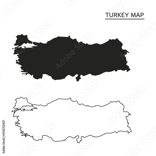 "Turkey Map Vector – Black Filled and Outline Map Design for Educational and Graphic Use"