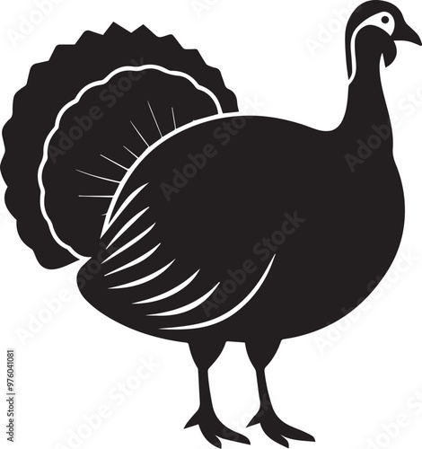 turkey standing proudly silhouette vector white background1.