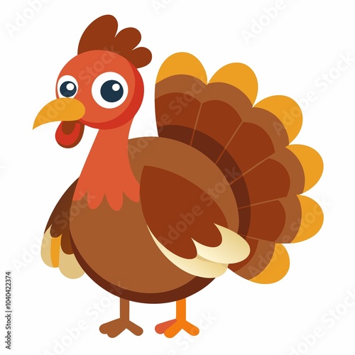 turkey, bird, thanksgiving, cartoon, animal, illustration, vector, holiday, autumn, isolated, pilgrim, poultry, food, art, fowl, dinner, cute, feather, funny, wing, celebration, harvest, farm, beak, brown