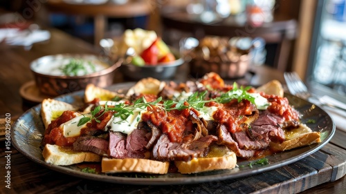 turkish, plate, doner, meat, bread, sauce, tomatoes, yogurt, herb, traditional, authentic, cookery, food, meal, dinner, lunch, eatery, serving, presentation, cooked, sliced, layered, garnished, delicious, epicure, culinary, dining, favor, tasty, appetising, fresh, savoury, grilled, vegetable, copper, dish, table, warm, gold, rich, creamy, textured, mediterranean, middle eastern, gastronomy, specialty, regional, cultural