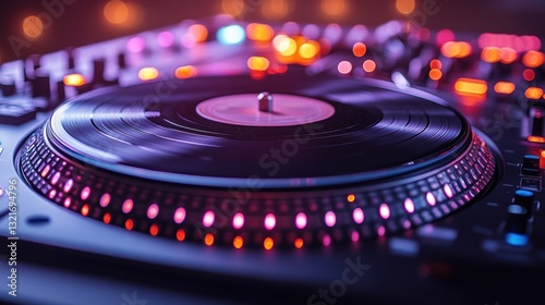 Turntable Close-Up: Vibrant Nightlife DJ Setup