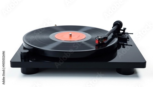 Turntable with vinyl record, isolated on white , music equipment, isolated