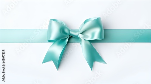 Turquoise Gift Ribbon with a Bow on a white Background. Festive Template for Holidays and Celebrations