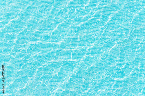 turquoise ocean waves, top view. Blue sea surface with transparent water as background