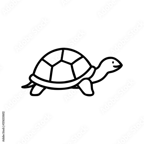 Turtle icon with a smiling face, black outline, modern design