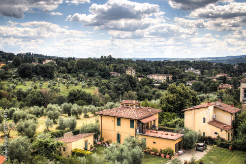 Tuscany landscape with some houses seen from piazzale Michelangelo in Florence, Italy