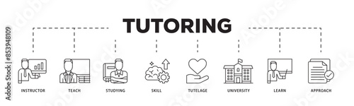 Tutoring icon infographic illustration concept with icon of approach, learn, skill, university, tutelage, studying, teach, instructor icon live stroke and easy to edit