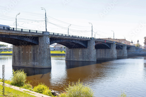 Tver. Tver region. Walk along the Volga. View of the New Volga bridge and the old Volga bridge.