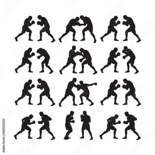boxing, fighter, sport, combat, competition, match, training, physical exercise, athletic, athlete, male, man, person, silhouette, black, white, graphic, illustration, action, movement, stance, punch, guard, fight, ring, opponent, struggle, power, strength, fitness, active, dynamic, energy