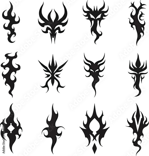 tribal, tattoo, silhouette, design, element, symbol, art, graphic, black, white, ink, body art, pattern, illustration, vector, style, culture, abstract, shape, flames, fire, mystical, spiritual, ancient, modern, geometric