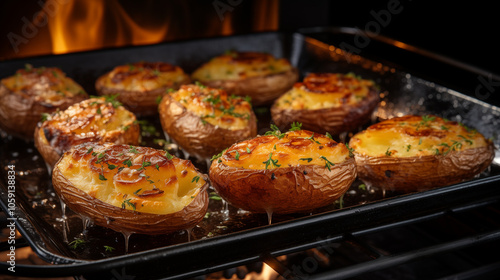 potato, cheese, herb, oven, baked, crispy, side dish, comfort food, gold, savoury, delicious, dinner, chives, roasted, rich, homemade, hearty, cheesy, holiday, rustic, cosy, epicure, tasty, warm, snack, culinary, party food, inviting, traditional, favor