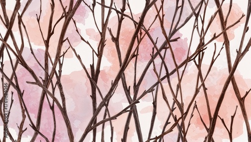 twig, seamless, pattern, watercolor, background, hand-painted, illustration, botanical, nature, organic, decorative, design, arts and crafts, floral, textured, artistic, creative, elegant, detailed, rustic, seasonal, timeless, trendy, stylish, modern, bricolage, wallpaper, textile, fabric, print, hand-drawn, versatile, digital artwork, nobody