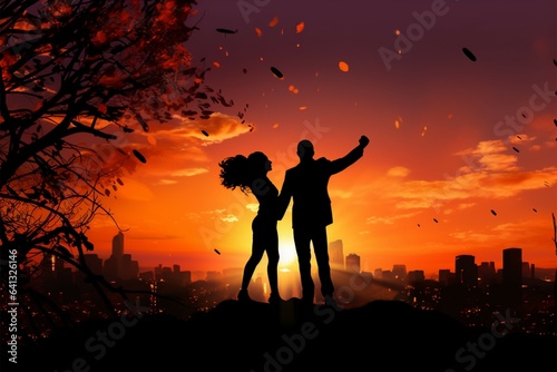 Twilight love story, Couples silhouette painted against the evening sky