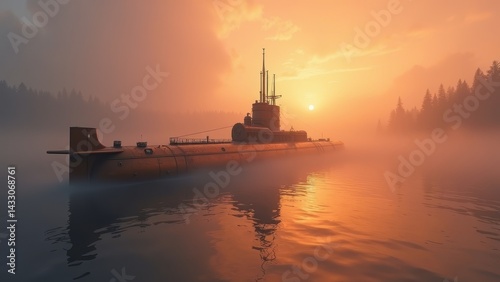 ship, sea, dusk, ocean, machinery, transportation, static, orange, water surface
