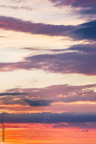 Twilight sky with light pastel orange color effect. Colorful sunset soft clouds. vertical