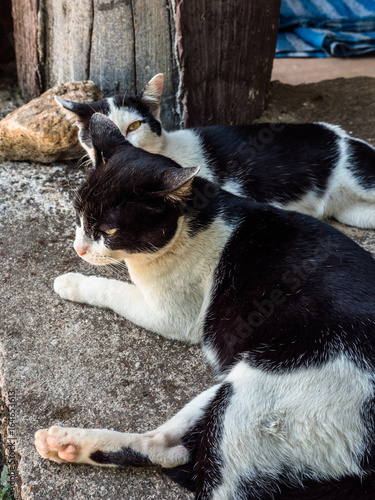 twin black and white cats